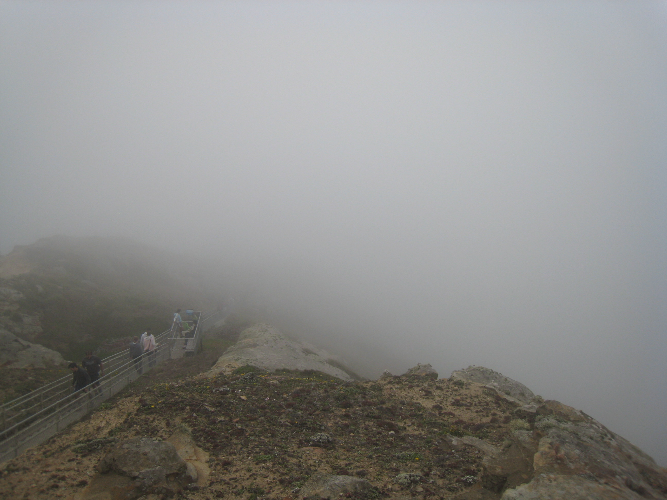 Once you finally arrive at the lighthouse parking lot, you may need to patiently wait for a spot to open up. The lighthouse is a popular attraction for tourists, who seem undaunted by the lack of visibility or the brisk wind. Ironically, the fog gods are at their least cooperative during the summer’s high tourist season. After a quarter mile walk to the main park service hut, under a canopy of several Monterey pines bent from the wind, it’s another 308 steps down a one-lane stairway to the lighthouse itself. Of course, with the steps disappearing into the fog, you’ll have to take it on faith it’s actually there.